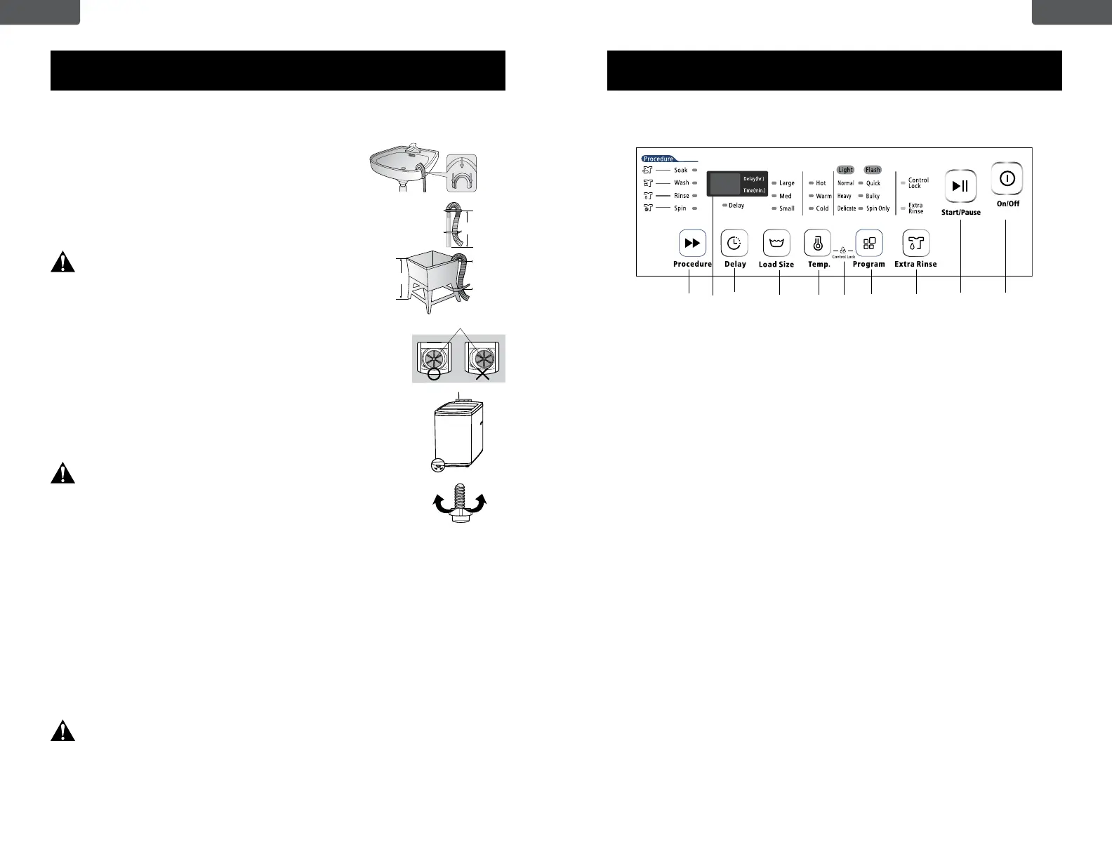 4. La laveuse ne doit pas basculer ou vibrer excessivement lorsque de l’eau est fournie