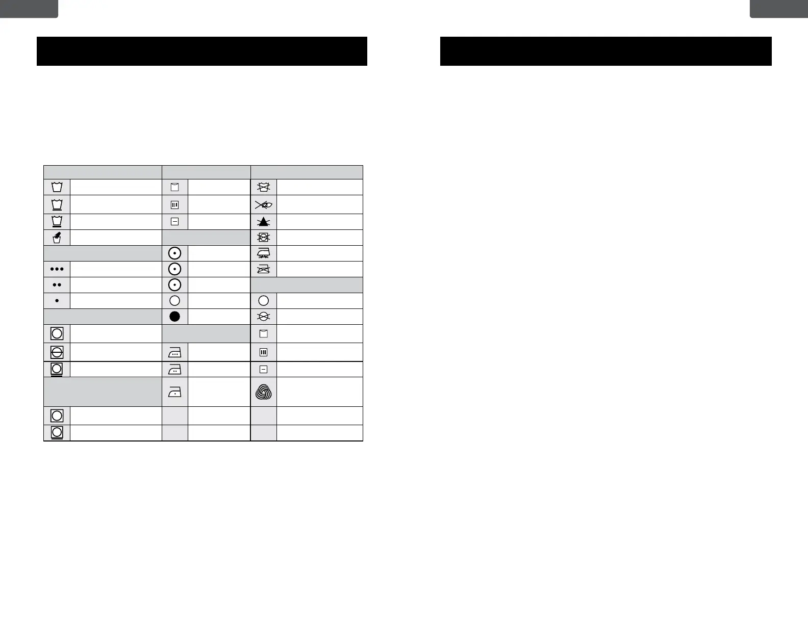 d’entretien des vêtements inclure des symboles pour le lavage, le blanchiment,