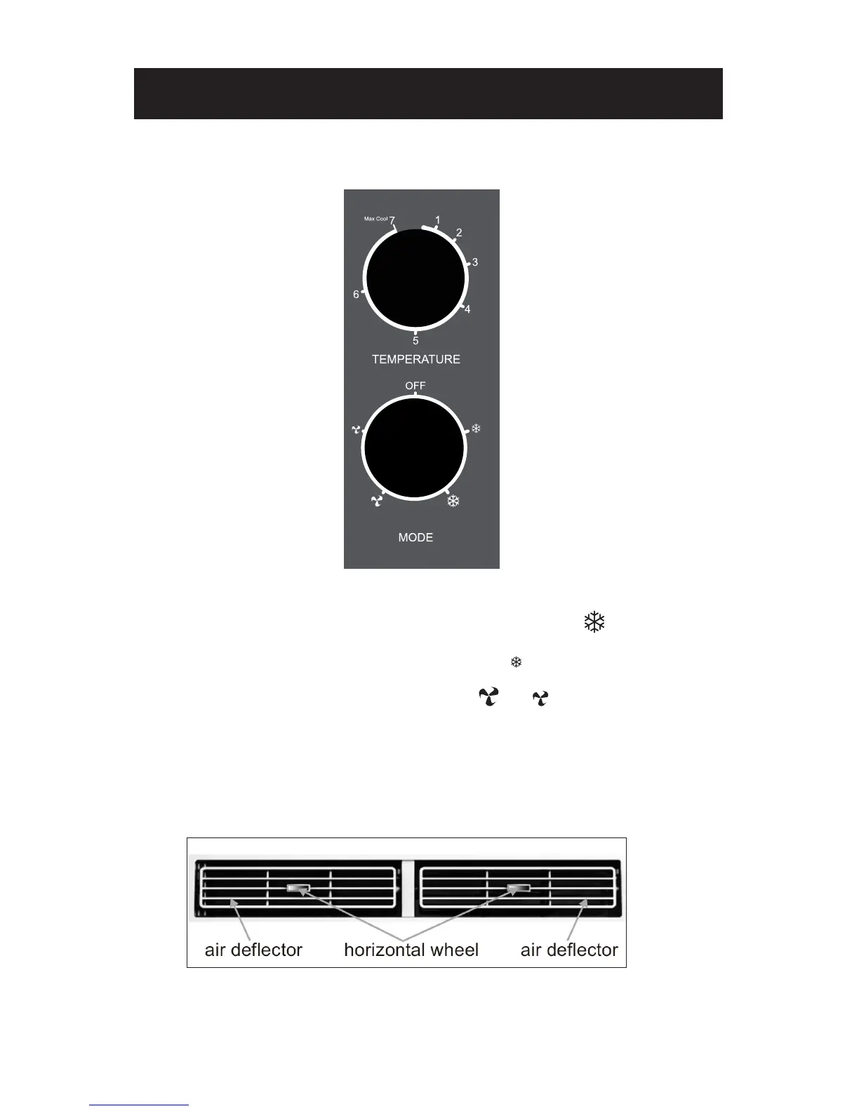 5. DIRECTIONAL LOUVERS: To direct the airflow, use horizontal wheel to control the