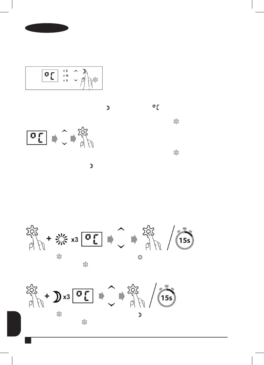 Дръжте натиснат , като същевременно натиснете трикратно Задайте желаната температура и я оставете