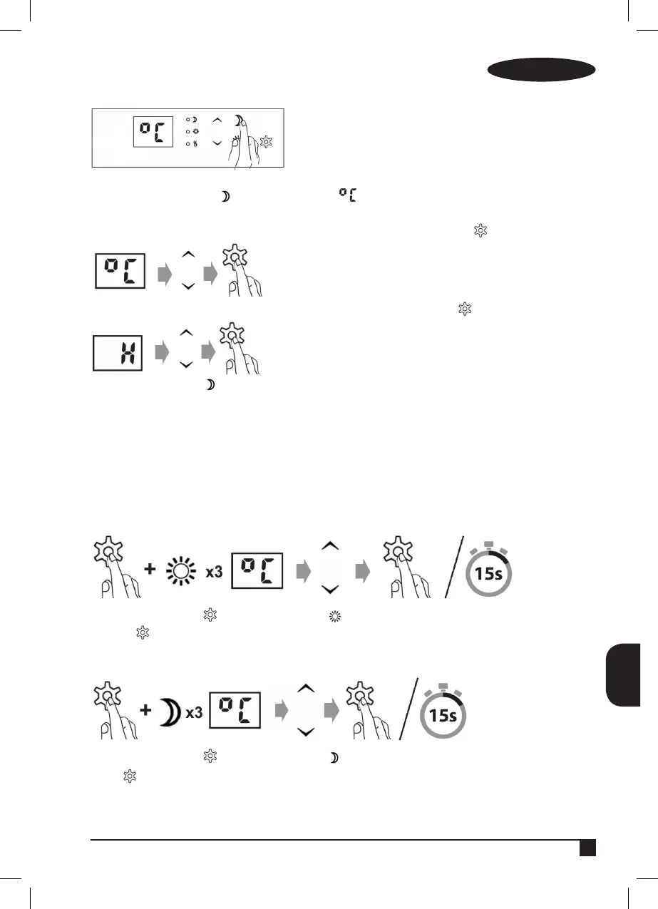 Нажмите и удерживайте , а также нажмите 3 раза Введите желаемую дневную температуру и сохраните их,