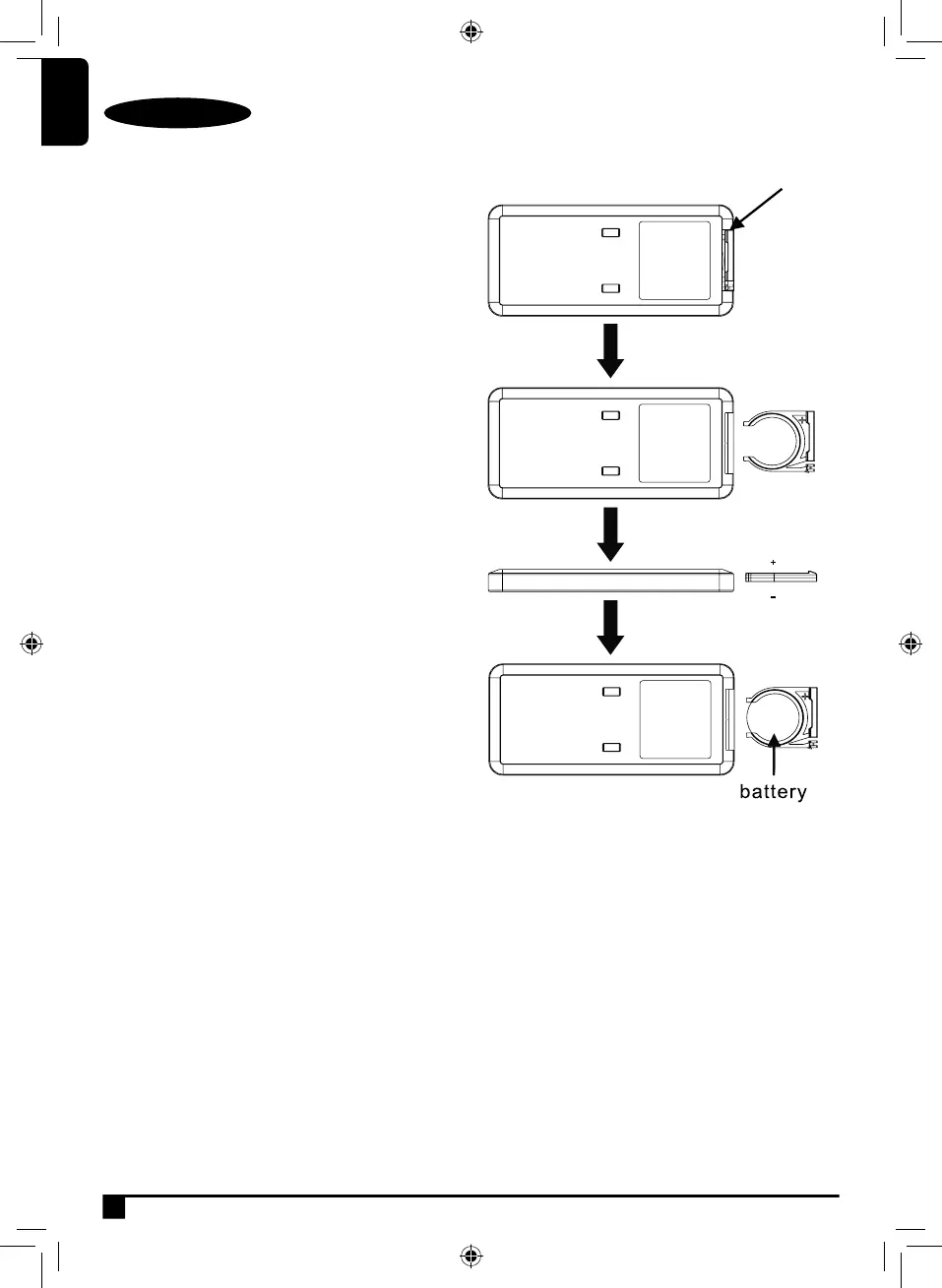 ♦ To insert the battery into the remote control, rst