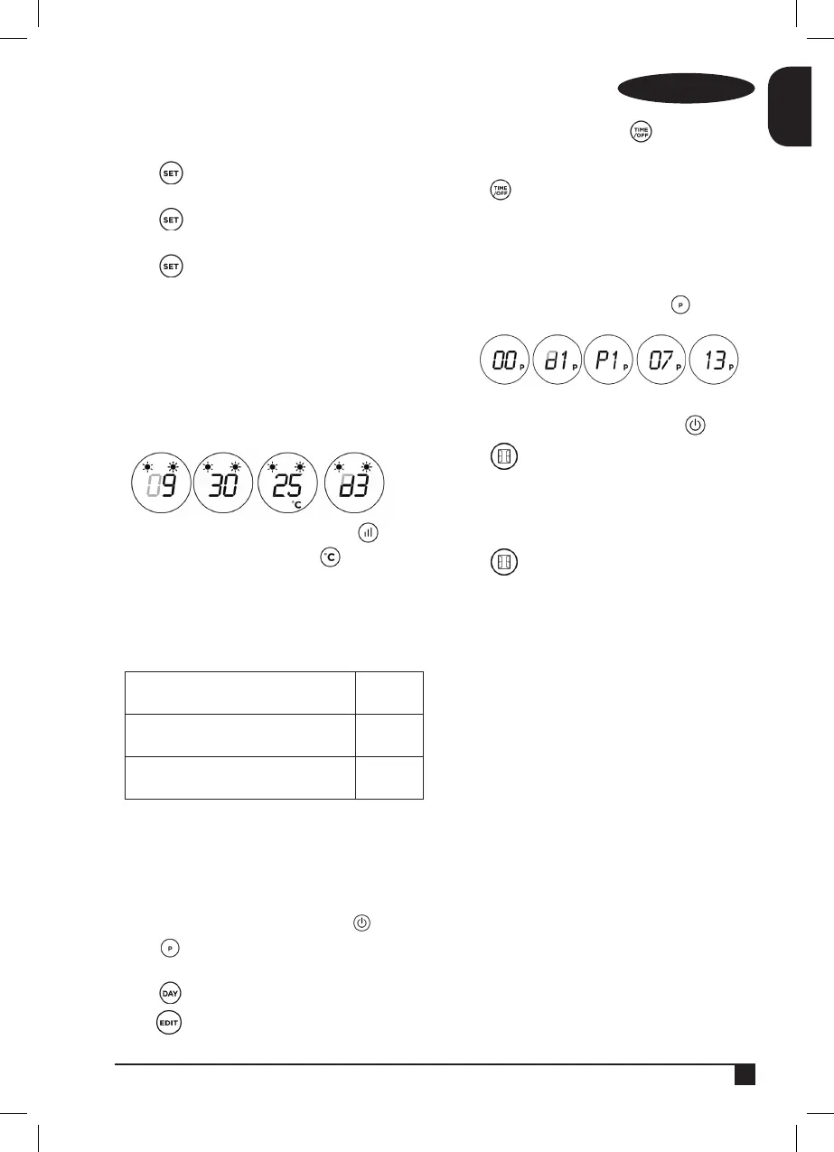 ♦ To set the program 1 (P1), press button and the
