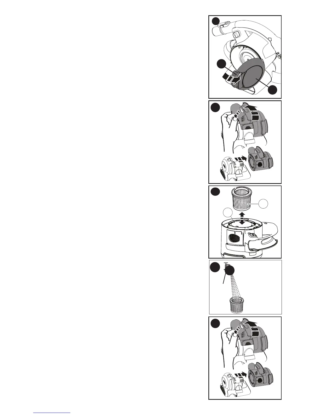 • Despuésdequitarlosfiltros,limpieeldepósitoparapolvo