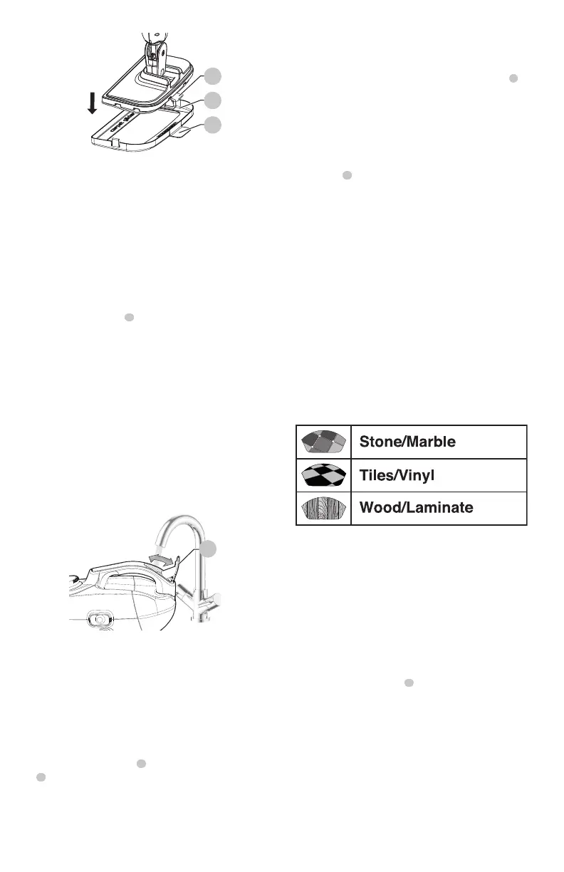 en la almohadilla de limpieza. Ahora el trapeador de vapor