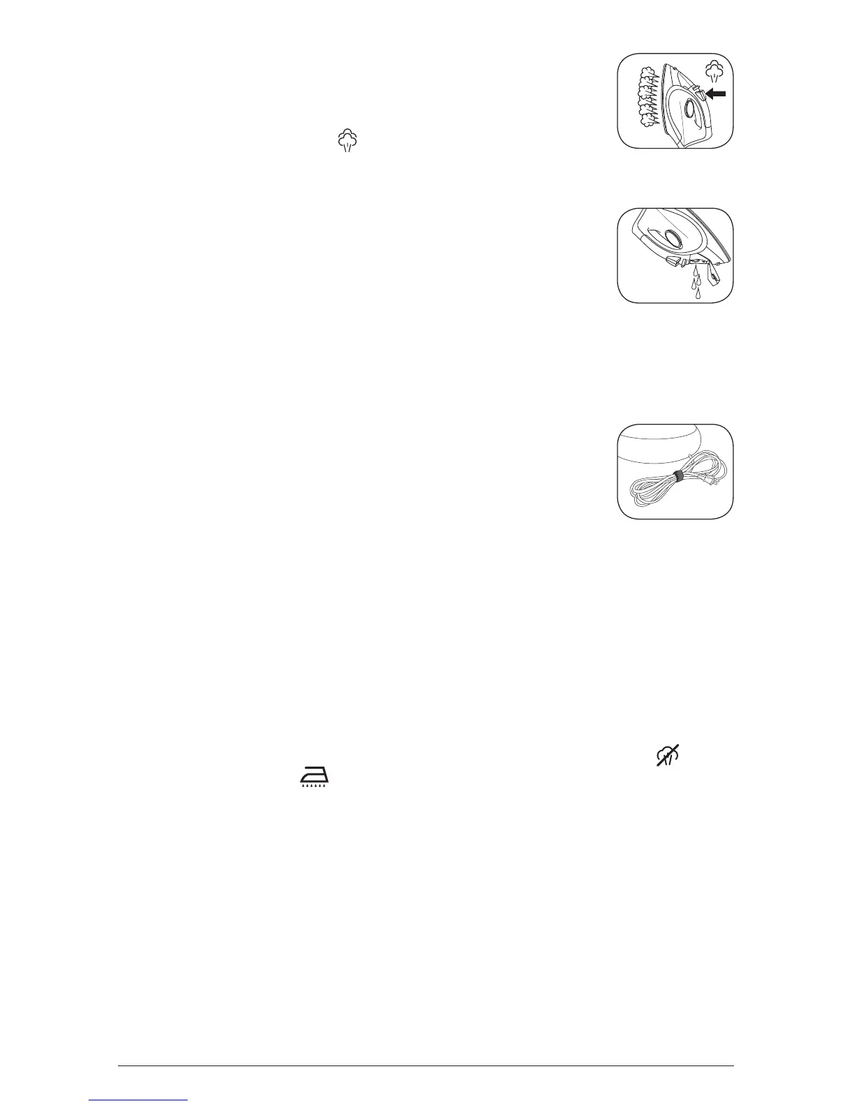 5. Tenir le fer à repasser au-dessus d’un évier, la semelle vers le bas.