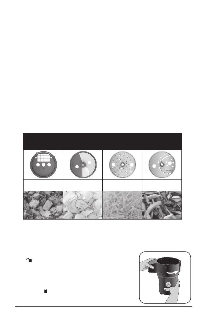 1. Determine si va a utilizar el disco para cortar en cubos, el disco para rebanar