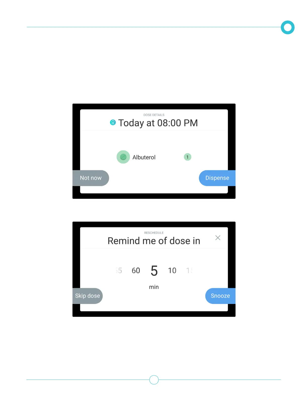 2. Tap Dispense to dispense the meds or say “Dispense” when the blue light on the inner base