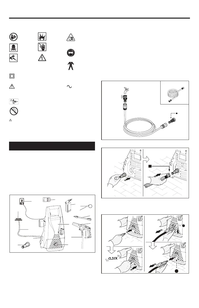 Danger sign, warns users not to direct the water jet at people,