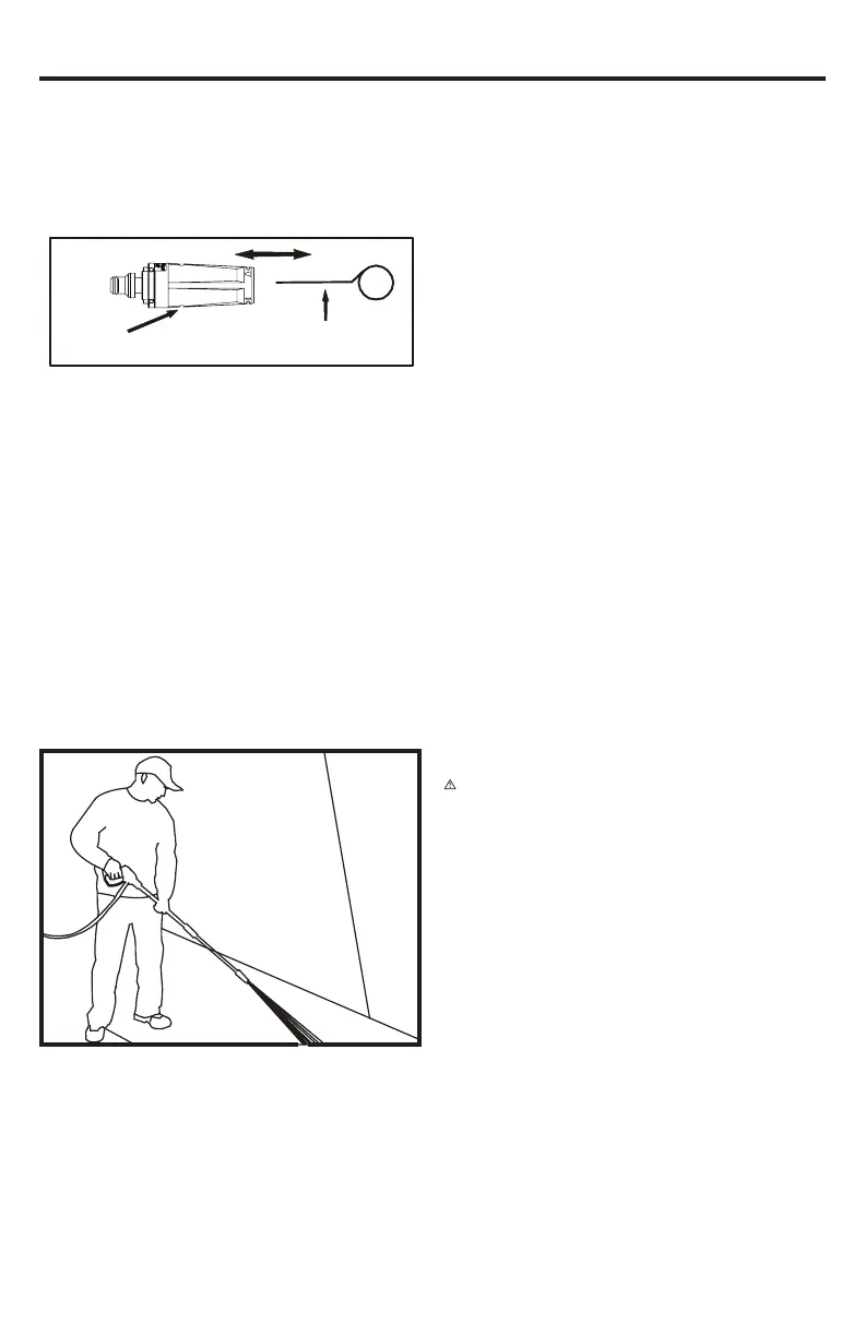 lỗ vòi phun và di chuyển qua lại cho đến khi
