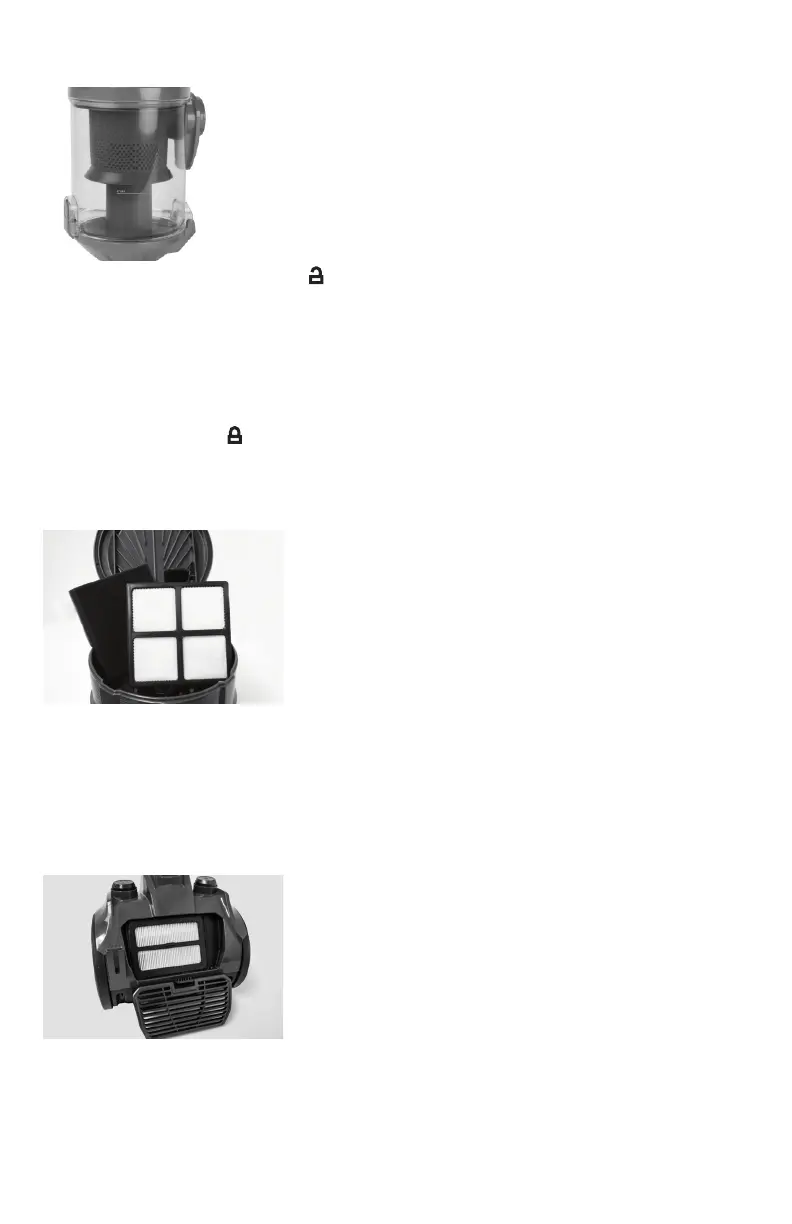 27. Insert the cyclonic lter screen into the dust collector and turn the dust collector to the lock position