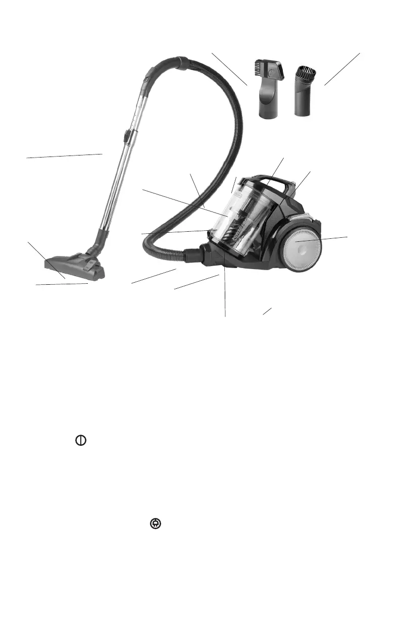 14. † Vacuum cleaner with 360-degree steering (Part # VCBD8090-01) (not shown)