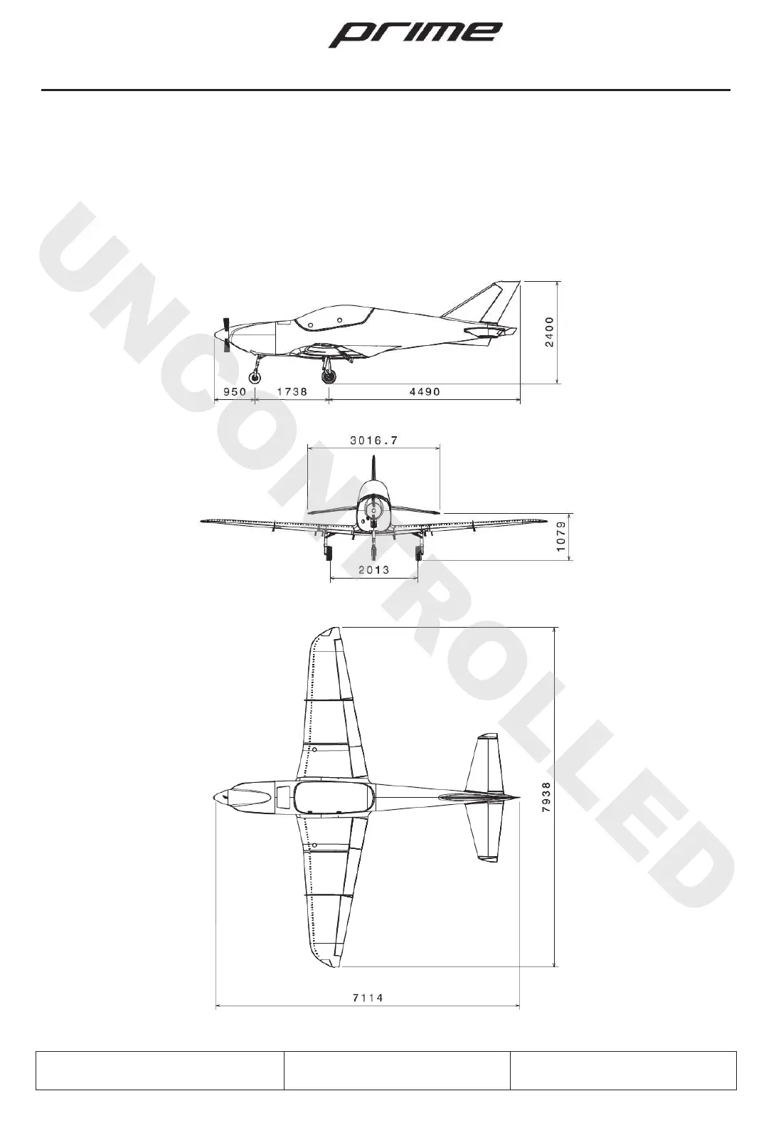 · The dimensions listed here (in mm) correspond to an aircraft weighting 472.5 kg with tires inflated at
