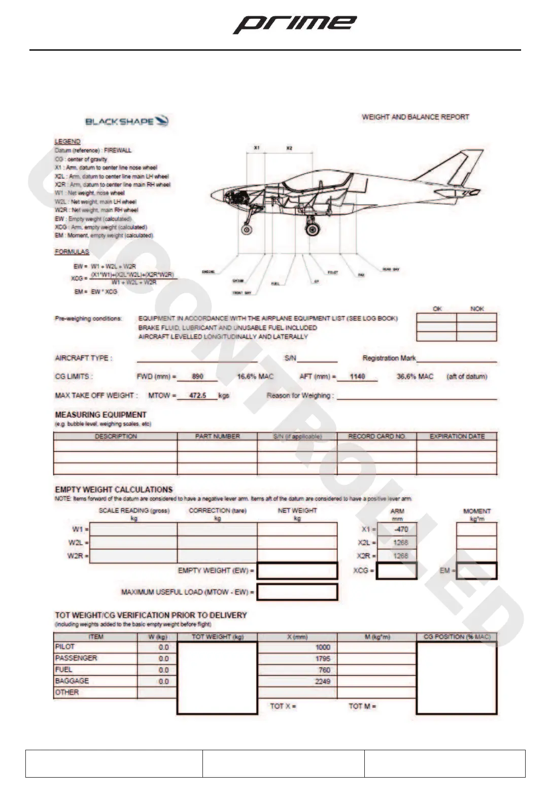Blackshape Prime - 6.4. Weight and Balance Report