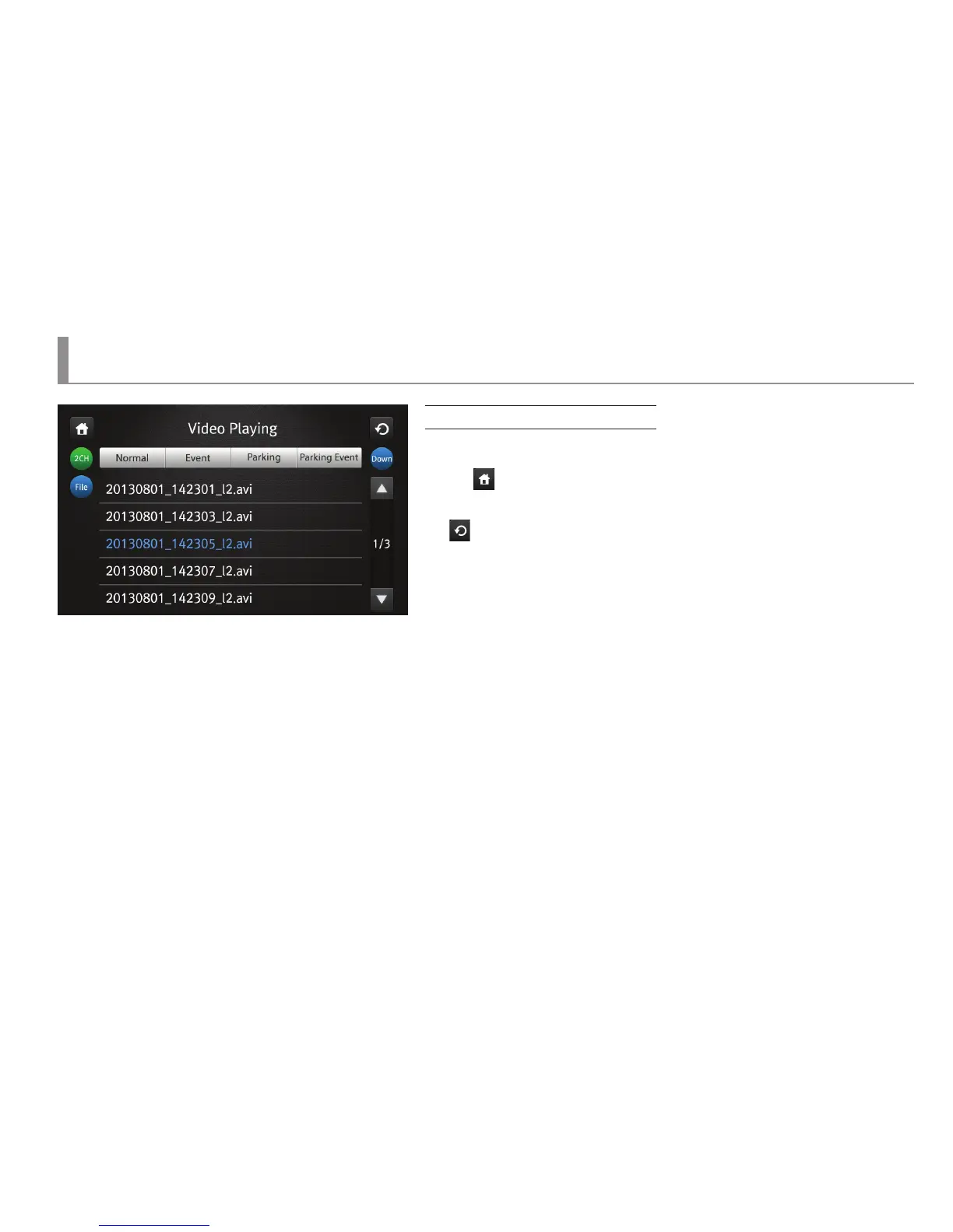 ▶ The video playing screen shows the list of recorded images saved in SD card.