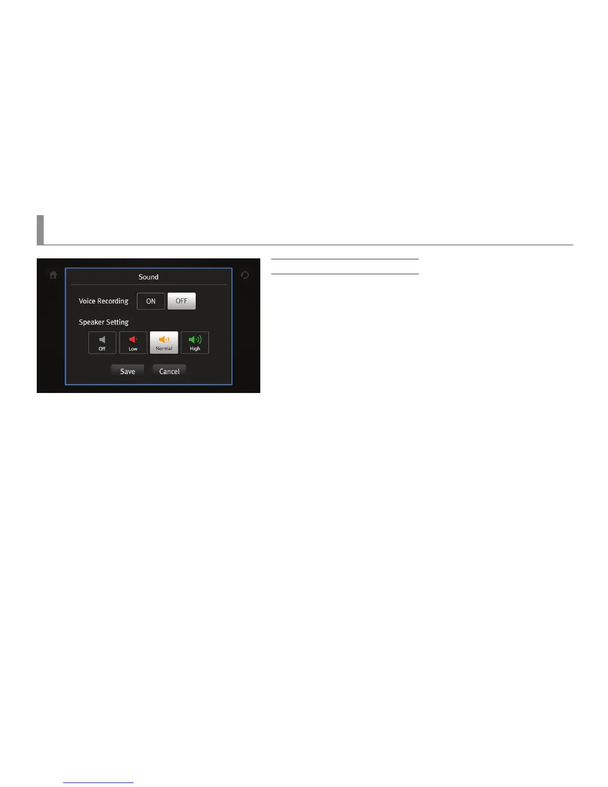 It is a screen for setup of speaker volume as well as voice recording on/o.