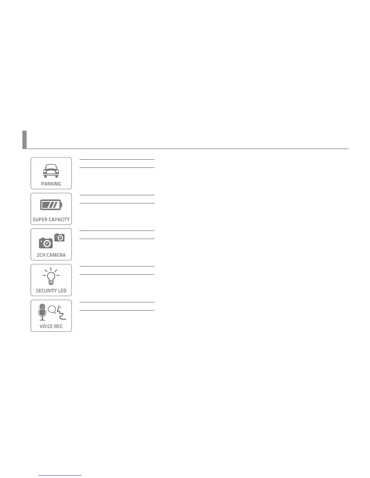 Security LED in front indicates that Car DVR is installed in this vehicle and it is always operating while Car DVR is powered on.
