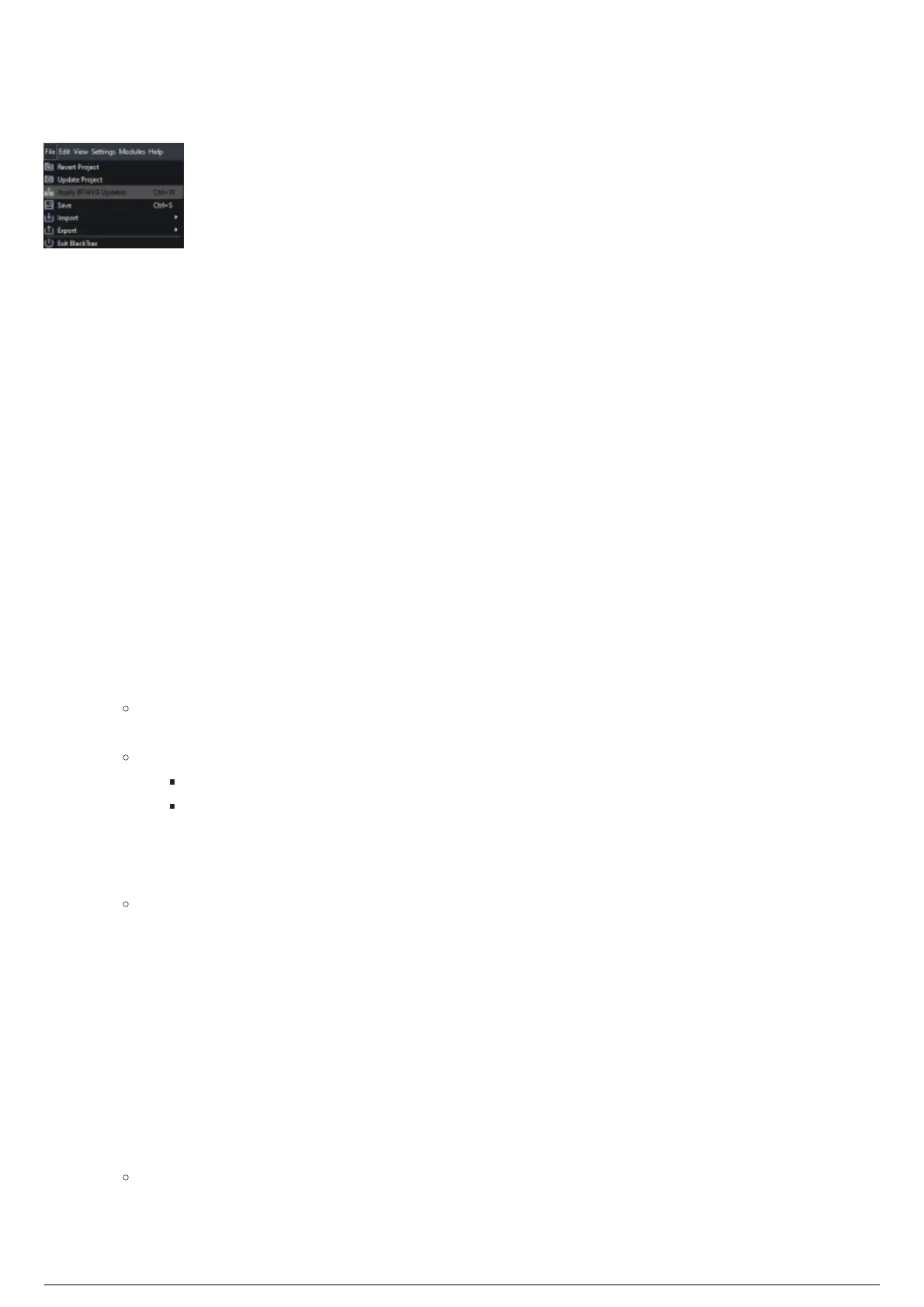 To update a BlackTrax project with new information from BTWYSIWYG via a .btx file