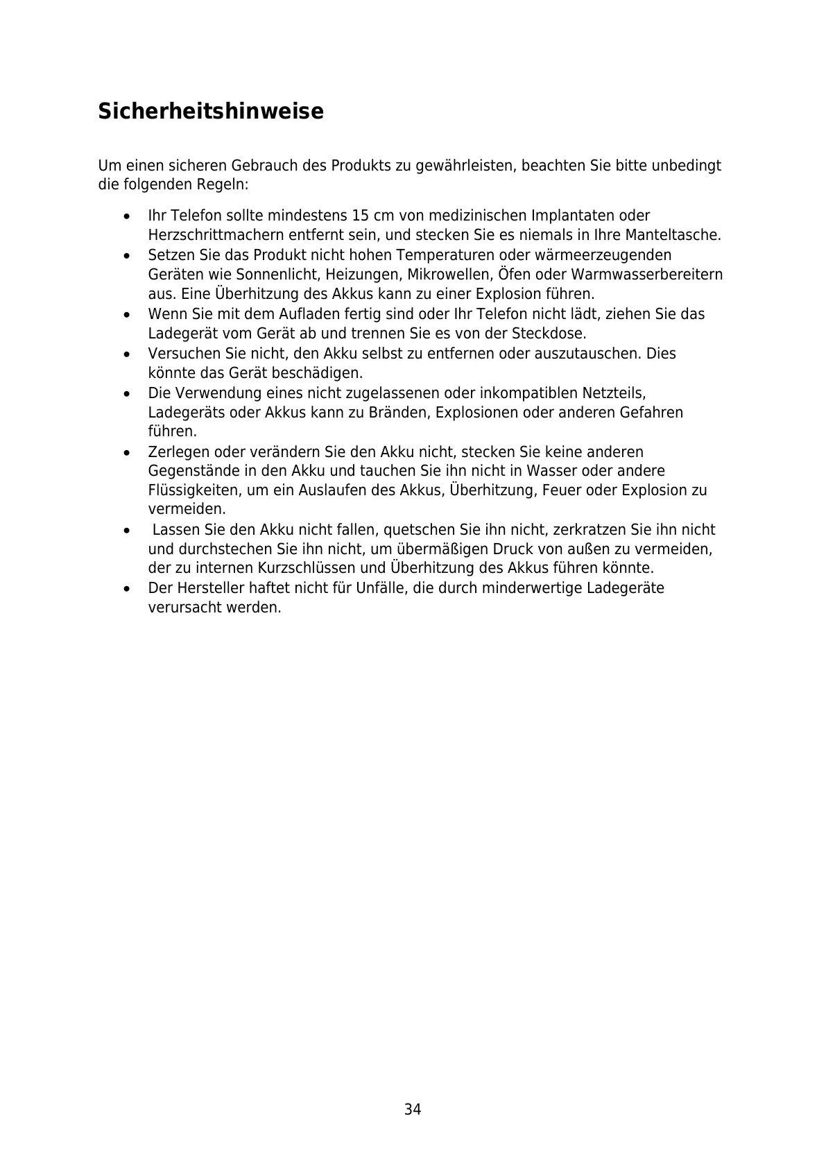 Der Hersteller haftet nicht für Unfälle, die durch minderwertige Ladegeräte