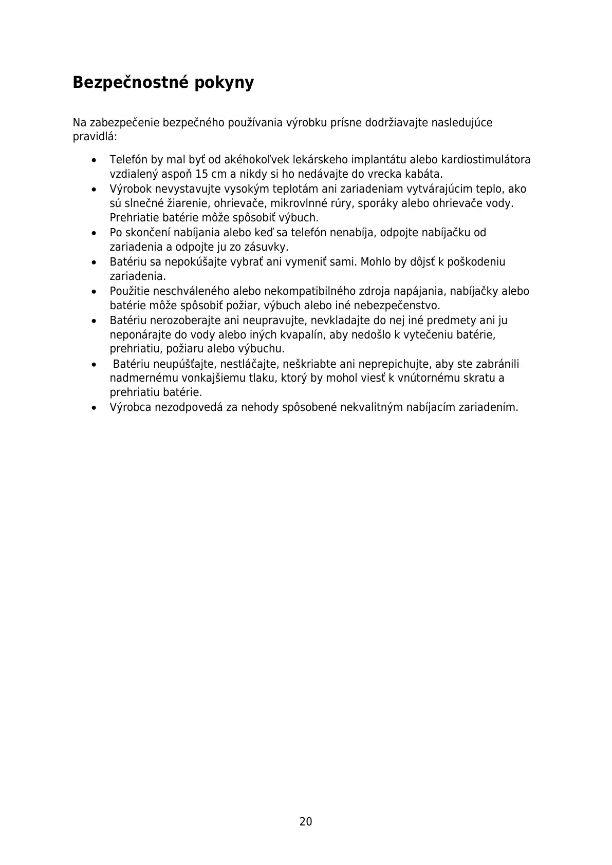 Po skončení nabíjania alebo keď sa telefón nenabíja, odpojte nabíjačku od