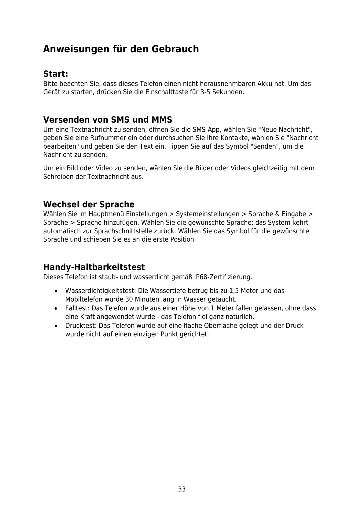 Dieses Telefon ist staub- und wasserdicht gemäß IP68-Zertifizierung.