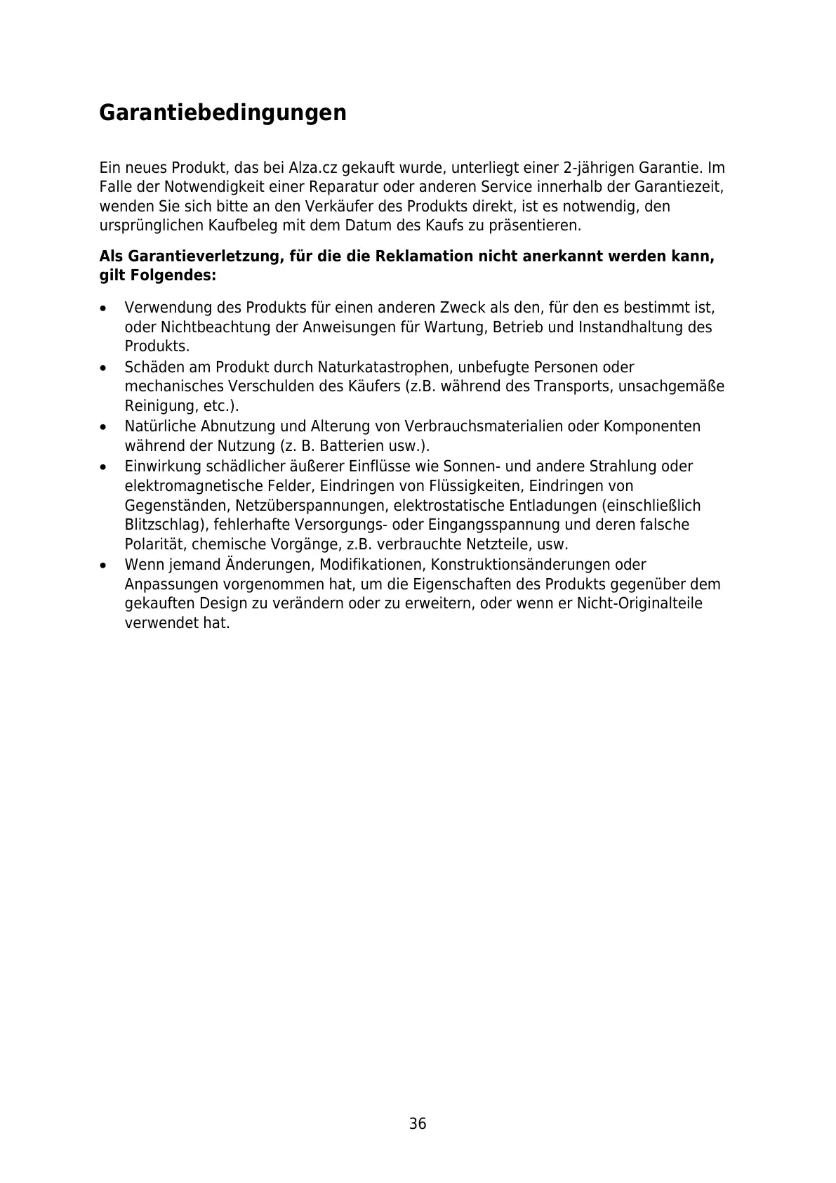 Als Garantieverletzung, für die die Reklamation nicht anerkannt werden kann,