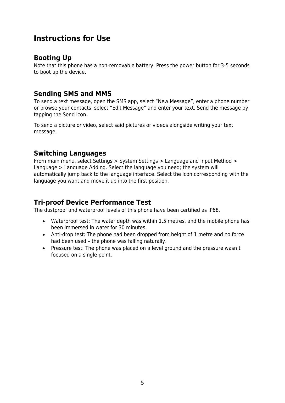 Anti-drop test: The phone had been dropped from height of 1 metre and no force