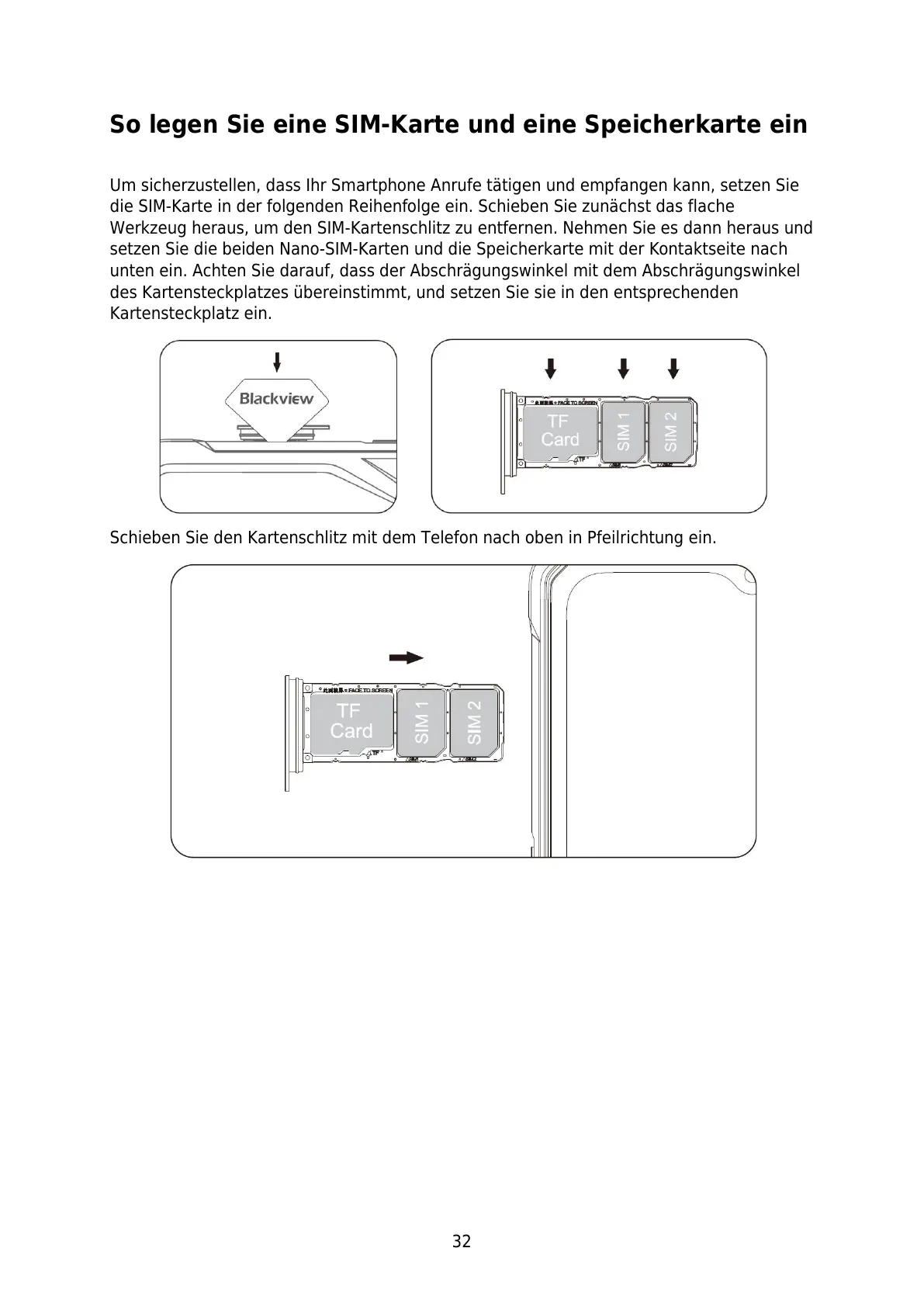 die SIM-Karte in der folgenden Reihenfolge ein. Schieben Sie zunächst das flache