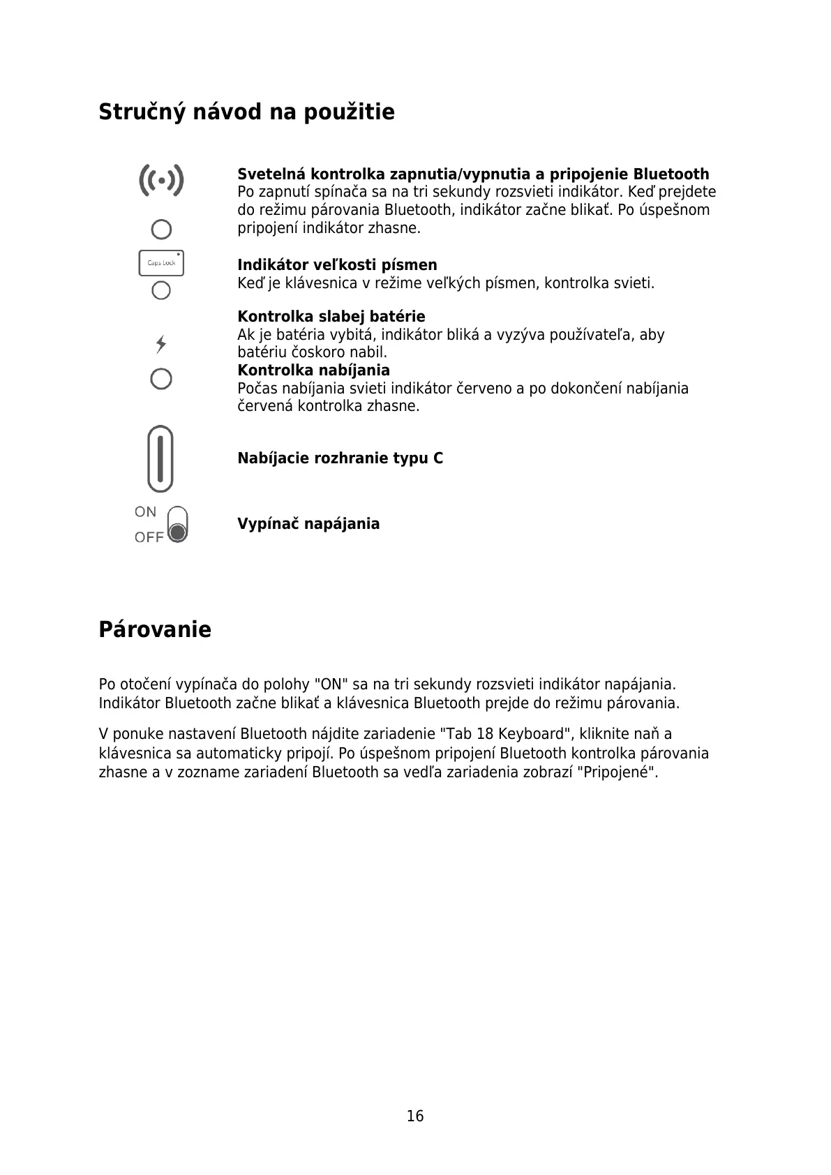 klávesnica sa automaticky pripojí. Po úspešnom pripojení Bluetooth kontrolka párovania