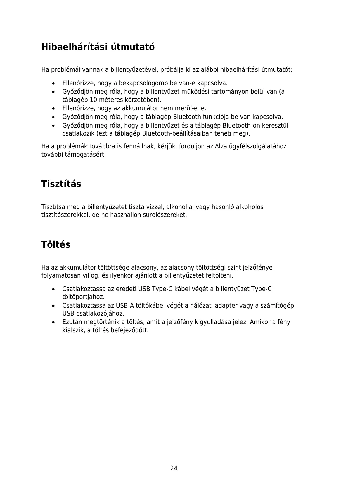 folyamatosan villog, és ilyenkor ajánlott a billentyűzetet feltölteni.