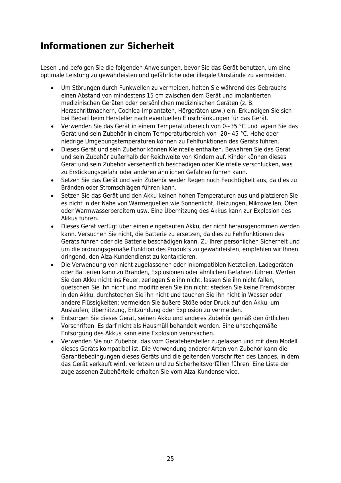 Geräts führen oder die Batterie beschädigen kann. Zu Ihrer persönlichen Sicherheit und