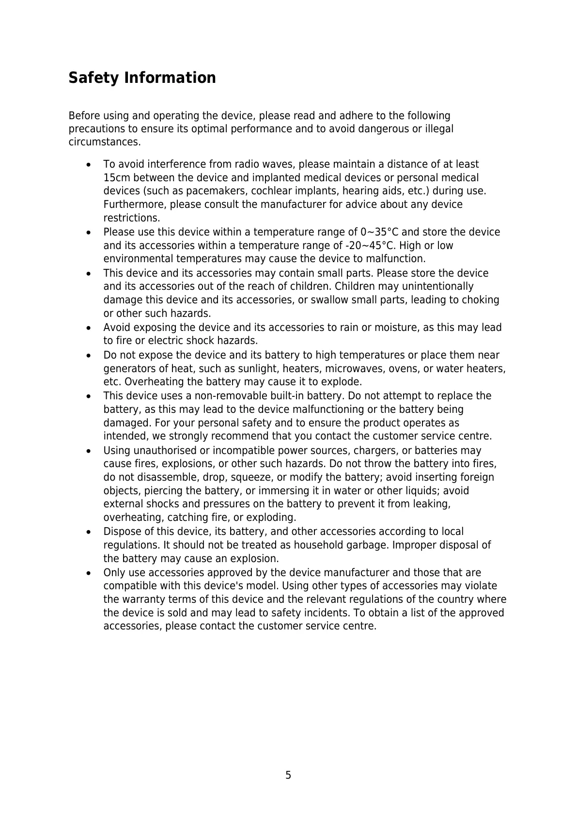 the device is sold and may lead to safety incidents. To obtain a list of the approved
