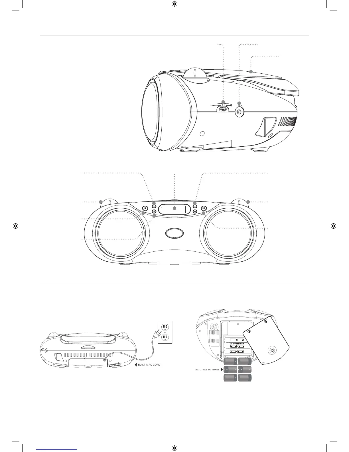 Plug the power cord into a standard AC power outlet to power the unit. This unit requires 6 C-size, batteries (not included) for battery power.