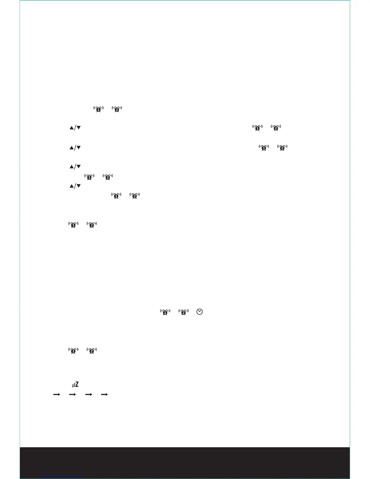 You can press to adjust the interval to repeat alarm. When the alarm rings, press the SNOOZE button on