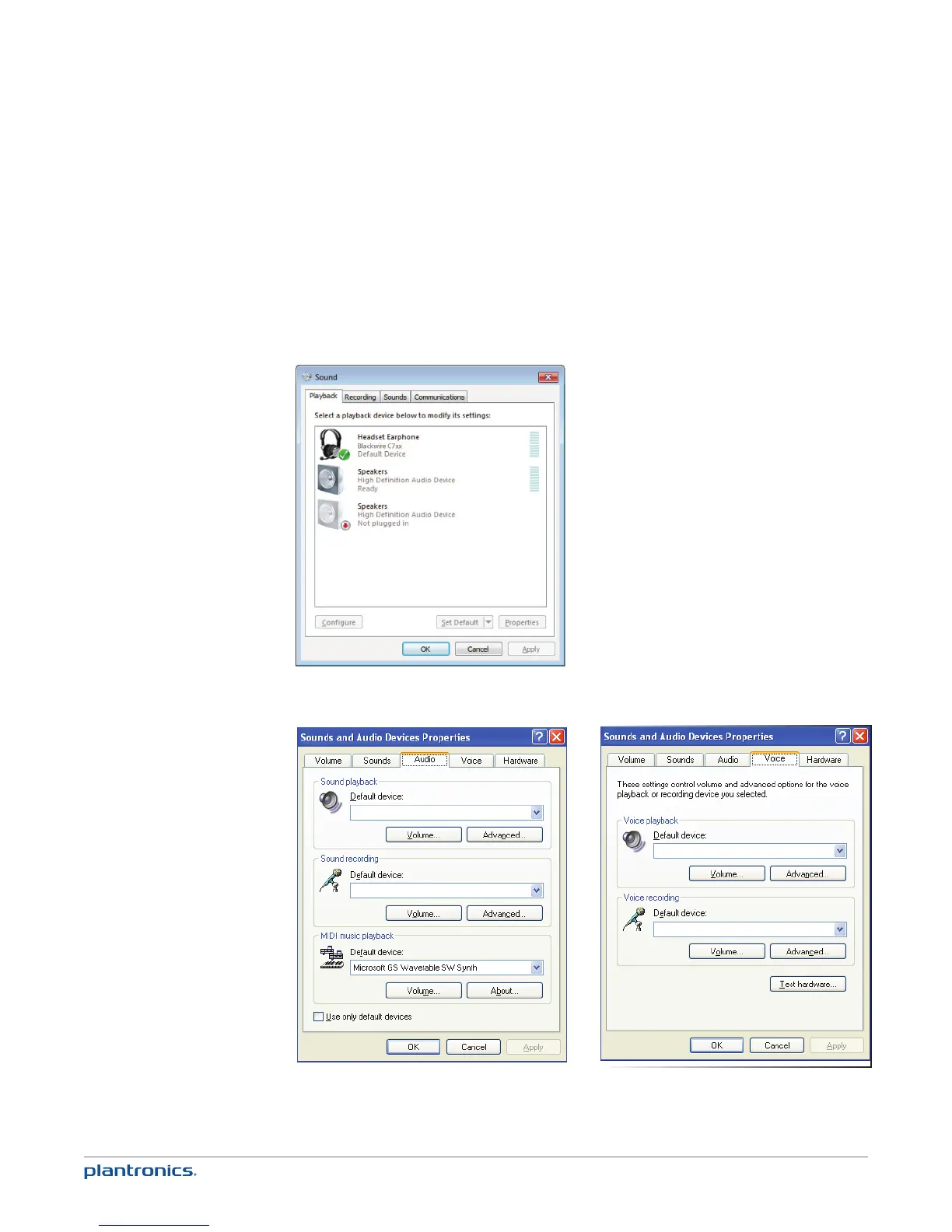 3 Confirm the speaker and microphone settings for your PC softphone are set to Plantronics