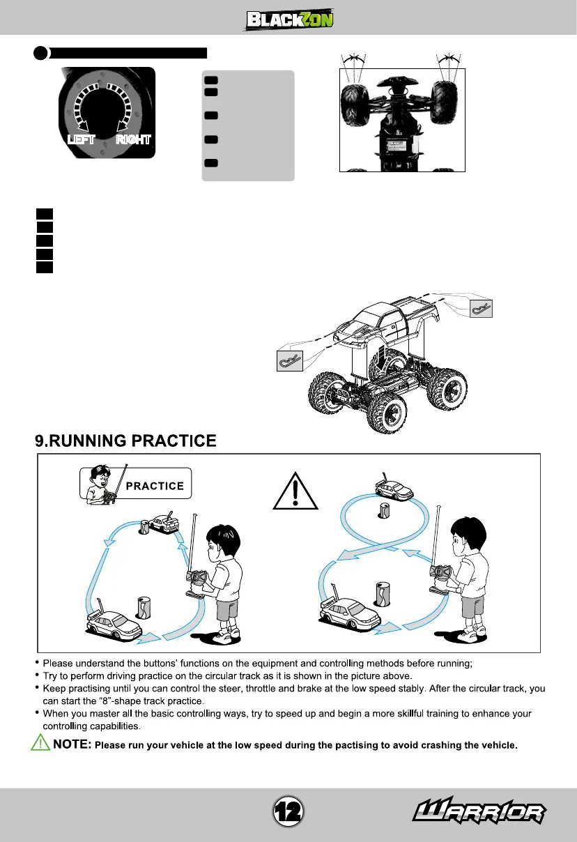 FR Réglez la garniture de direction pour que le véhicule se déplace droit sans volant.