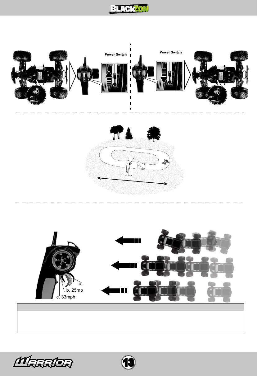1.ALWAYS turn on the vehicle first, then the transmitter. Always power off the transmitter before the vehicle.