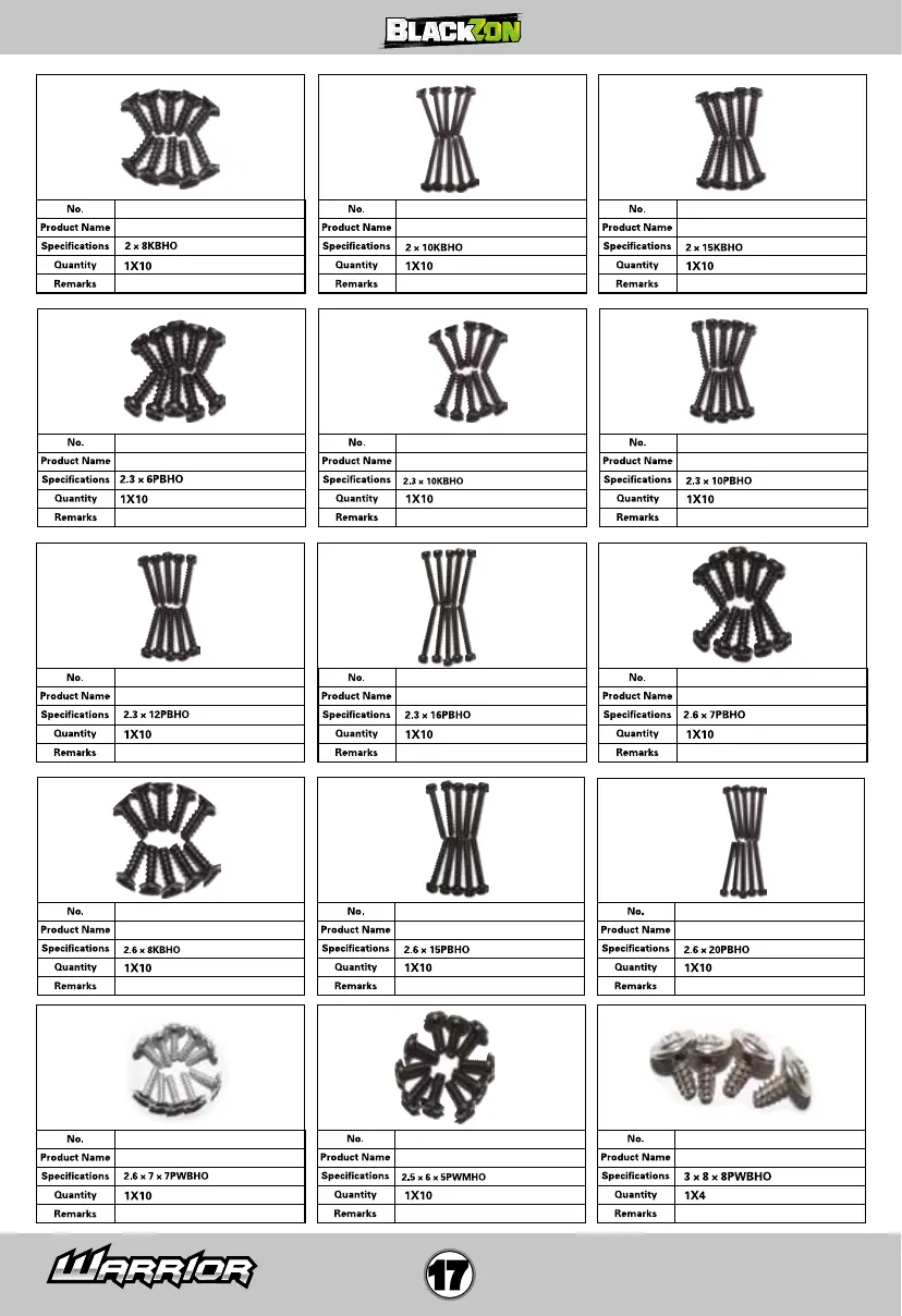 Button Head Screw 2.6x7mmButton Head Screw 2.3x16mmButton Head Screw 2.3x12mm