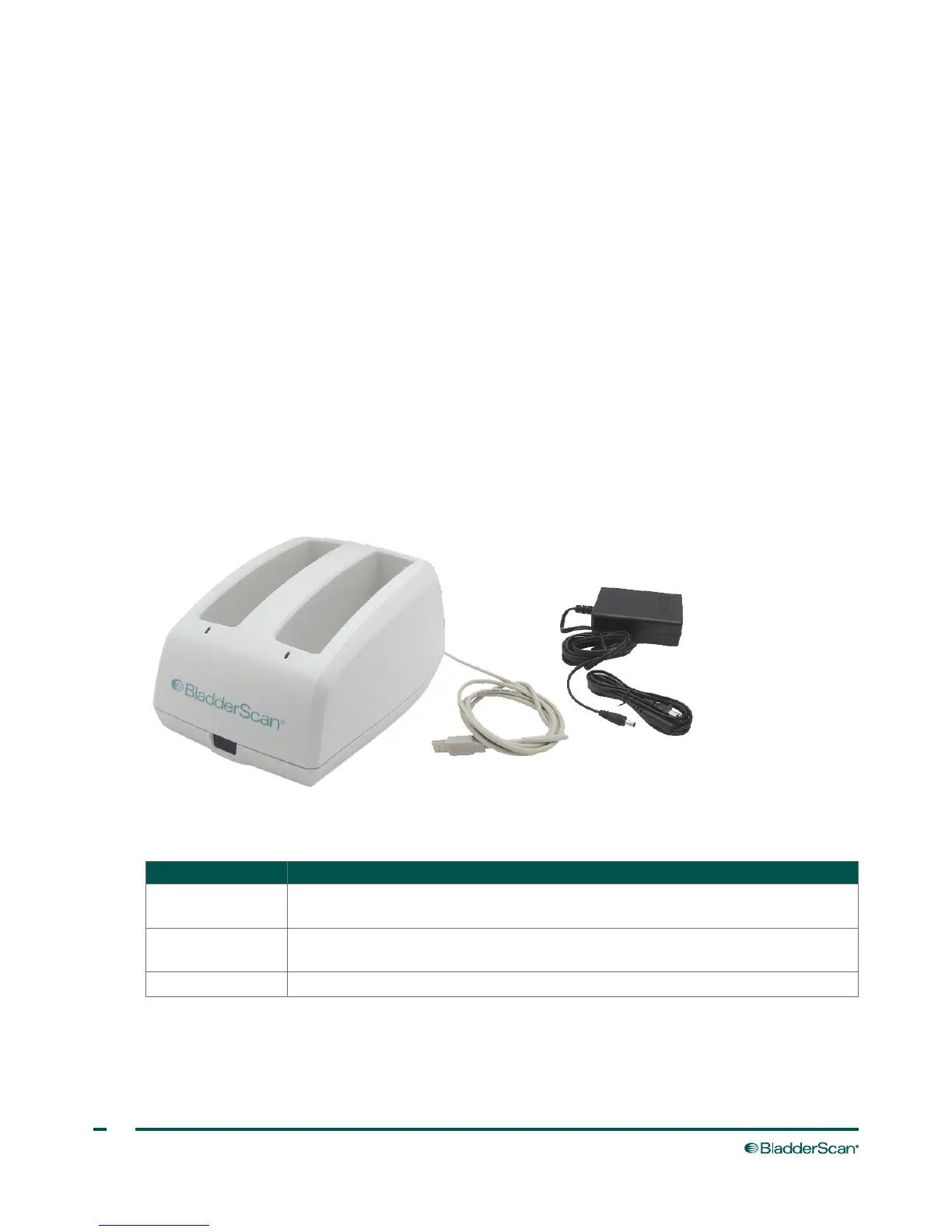 USBcable Connects the battery charger/wireless hub to the ScanPoint host computer.