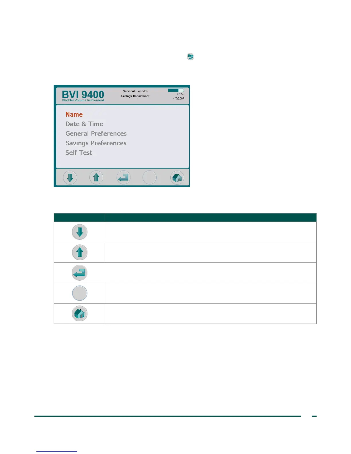 Table 12. Settings Screen Button Functions