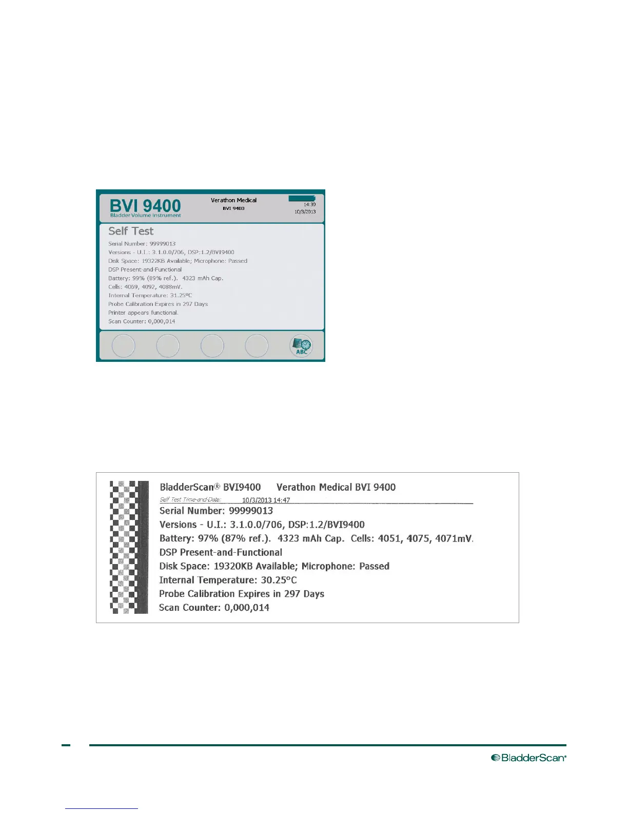 Once the Self Test screen is accessed, data on the screen is printed automatically using the instrument’s
