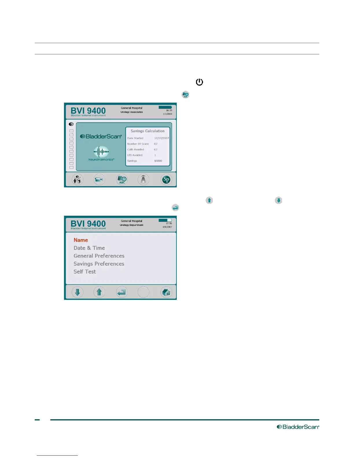 You can customize your BladderScan BVI9400 by entering your facility’s name. This information is included