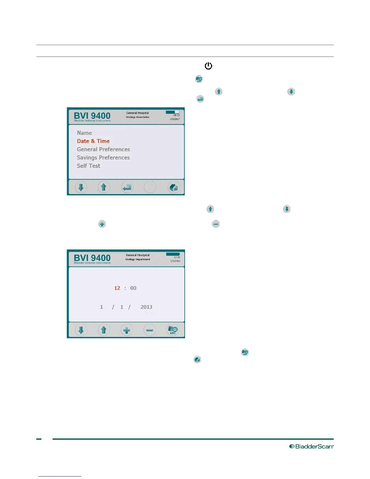 4. On the Date & Time screen, use the Up Arrow button and Down Arrow button to move to the