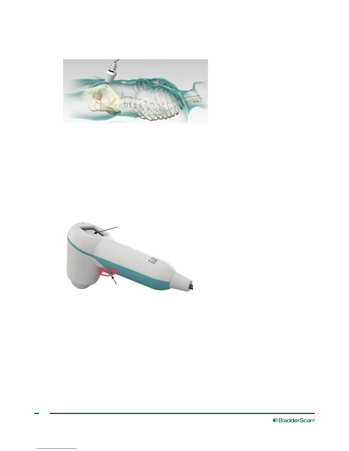 6. Aim the probe toward the expected location of the bladder. For most patients, this means angling the