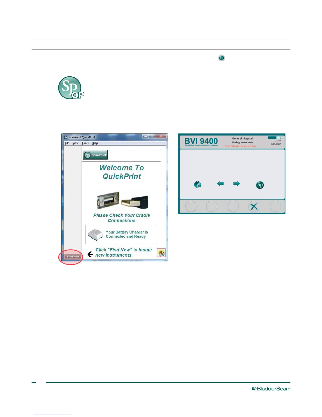 3. On the computer, in the ScanPoint QuickPrint window, click Find New. QuickPrint establishes a