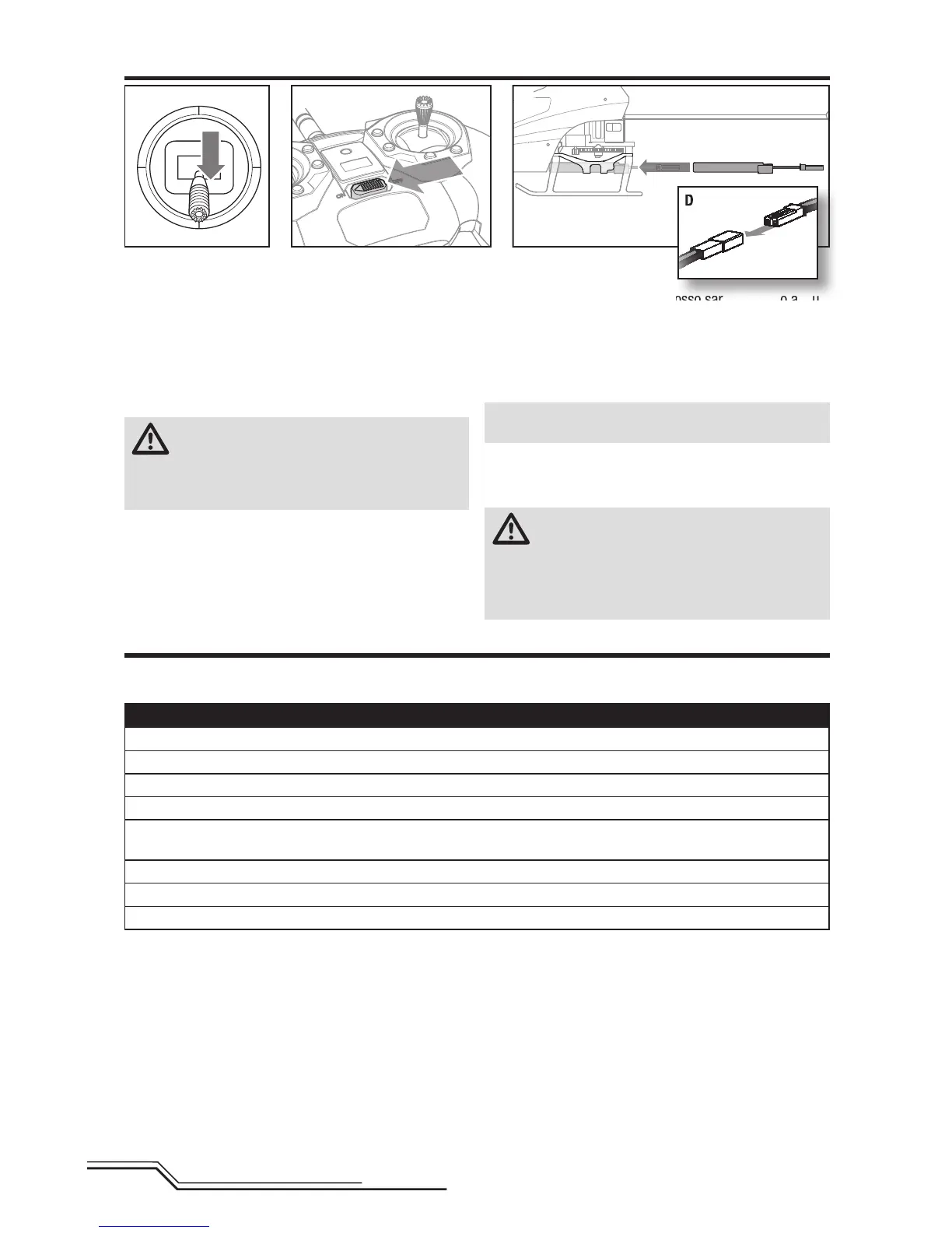 Il trasmettitore RTF viene fornito già connesso al modello. Se serve rifare la connessione, si prega di osservare le