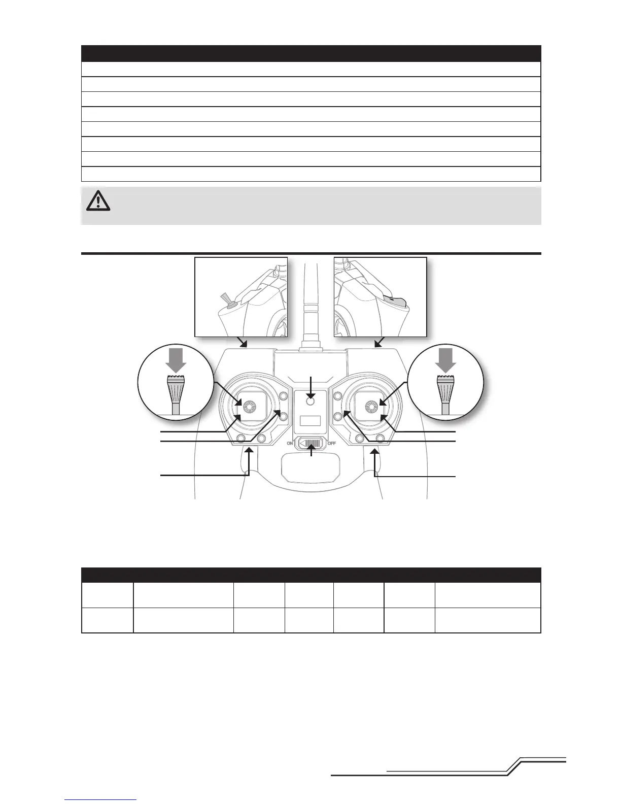 2. Refer the Transmitter Setup Table to correctly setup your transmitter.