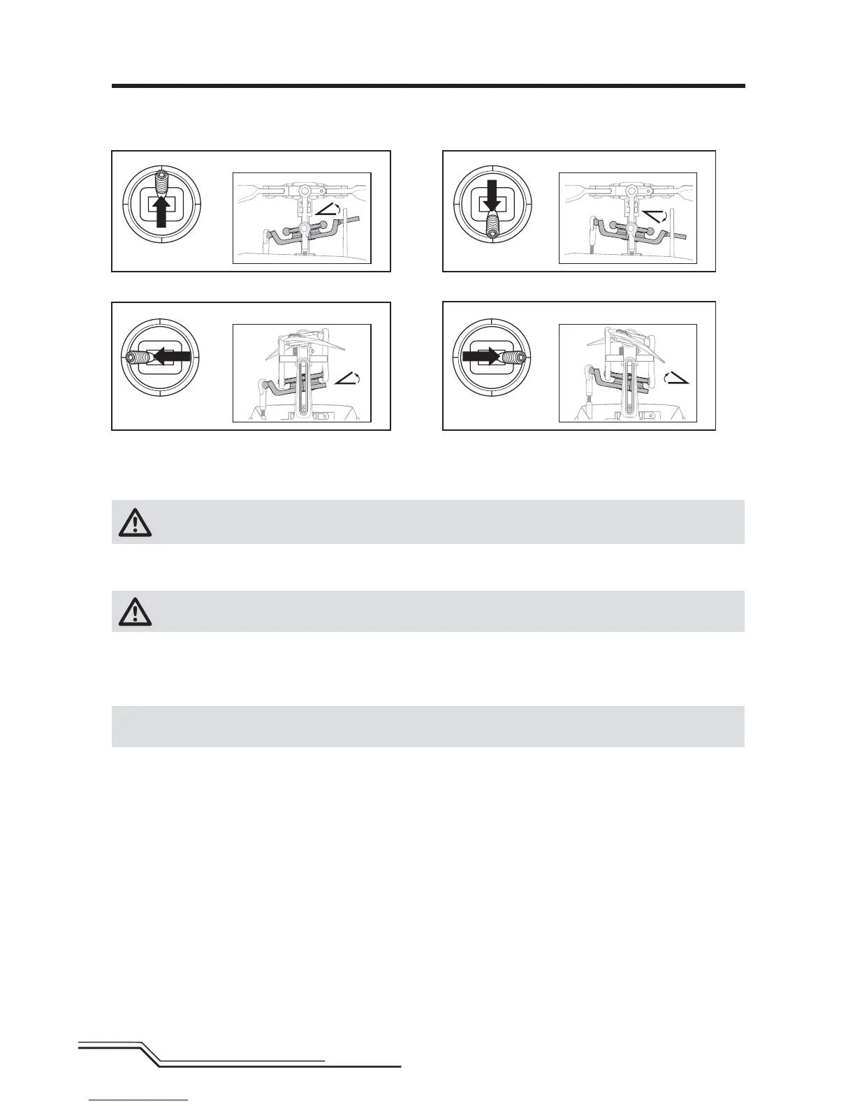 Test the controls prior to the fi rst fl ight to ensure the servos, linkages and parts operate correctly. Ensure the throttle is in