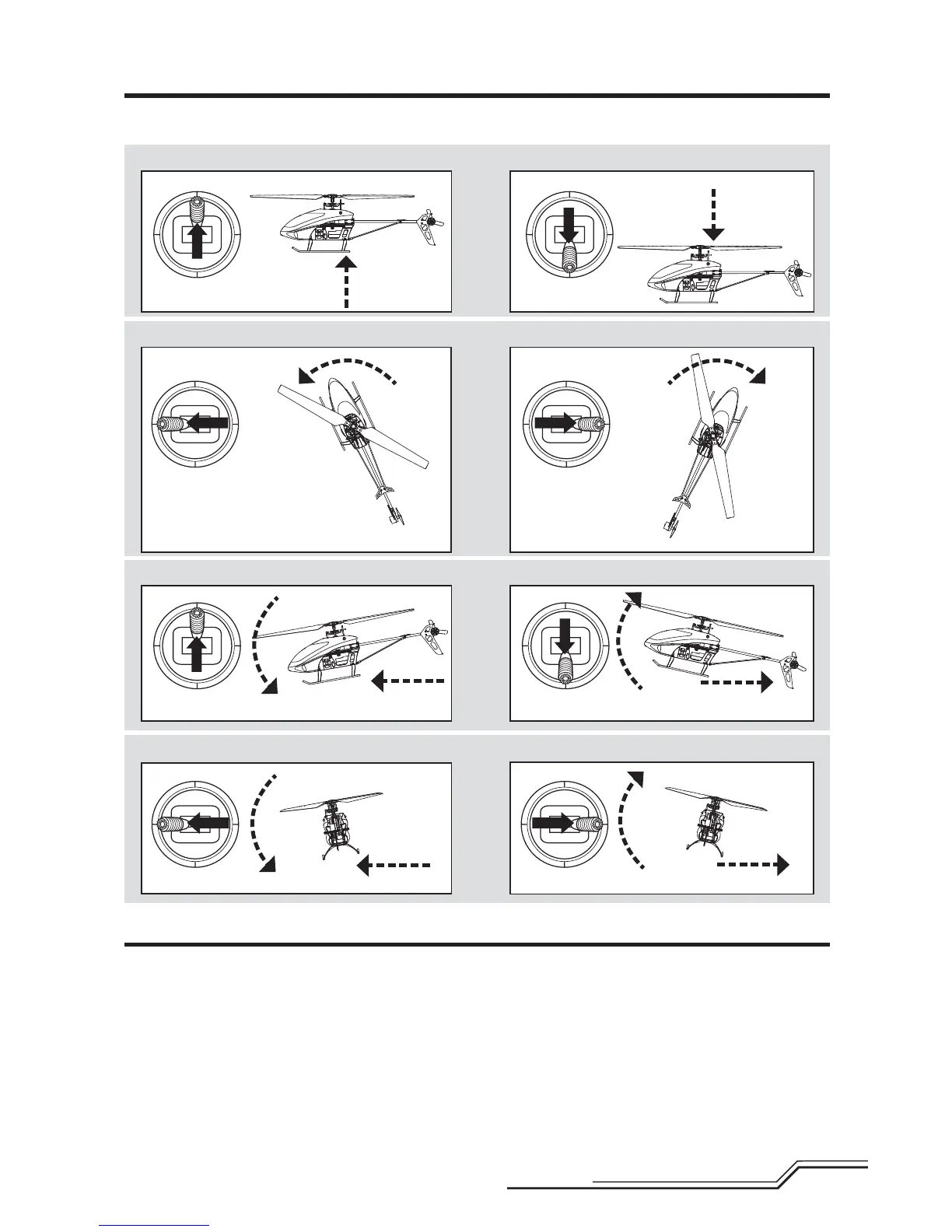 It is best to fl y from a smooth fl at surface as this will allow the model to slide without tipping over. Keep the helicopter