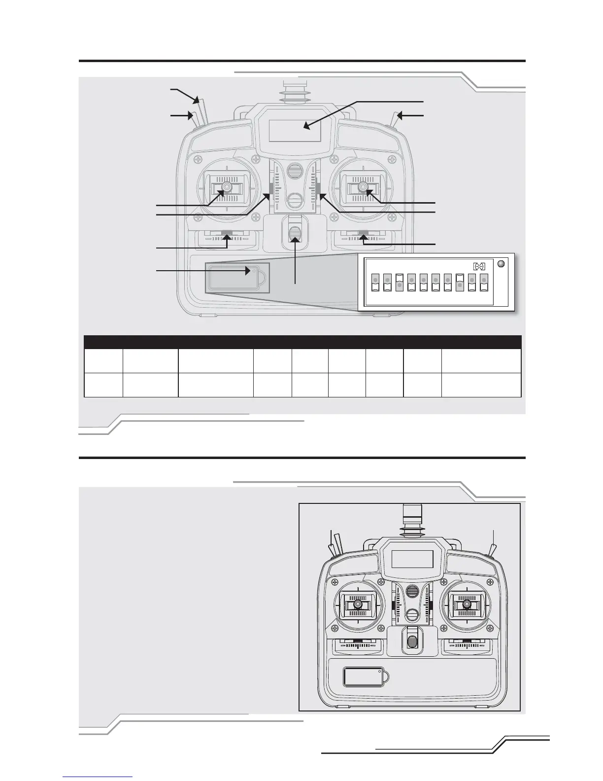 Refer to the Transmitter Setup Table for which switch on your transmitter selects fl ight modes and specifi c setup information.